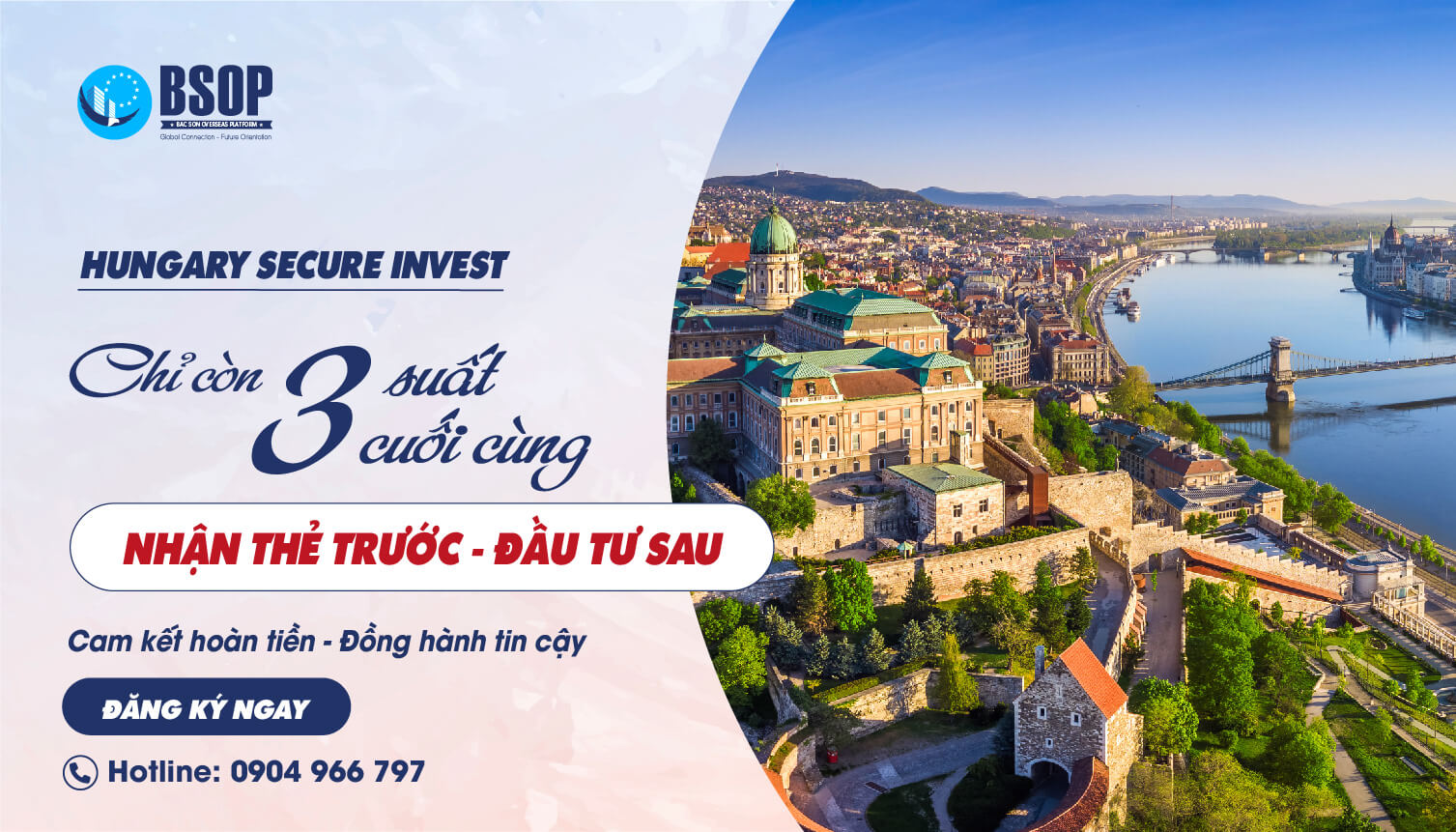 Để hỗ trợ các nhà đầu tư tận dụng được những cơ hội cuối cùng sở hữu thẻ cư trú Hungary chỉ với mức đầu tư 180.000 EUR vào bất động sản. BSOP đã triển khai chương trình HUNGARY SECURE INVEST: 10 SUẤT ĐẦU TƯ CUỐI – CAM KẾT HOÀN TIỀN – ĐỒNG HÀNH TIN CẬY từ 27/11/2023 đến hết ngày 10/12/2023.